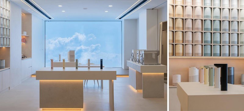 The Happie Home Studio welcomes visitors into a calm, minimalist space inspired by its expansive experiential showroom. Anchored by a soothing visual backdrop of clear blue skies and soft clouds, the studio encourages visitors to imagine the possibilities of a Happie home from enjoying a refreshing glass of water poured straight from a Happie dispenser, to breathing in crisp, clean air, and unwinding with revitalising moments from the kitchen to the shower and bedroom.