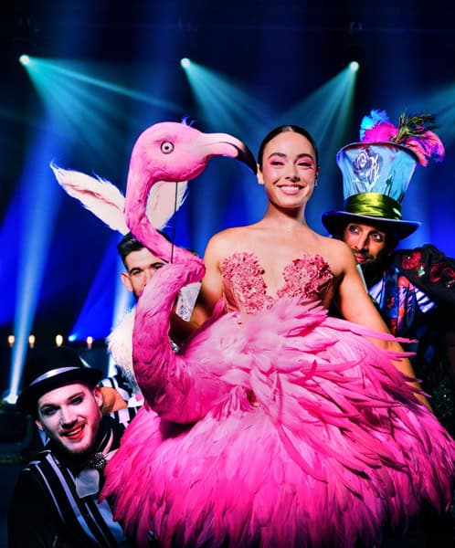 Sands Theatre has been transformed into a living Wonderland. Clever staging and the option of ring VIP/on-stage seating bring the action close enough to feel personal. Costume and set design are exuberant without ever feeling cluttered; projections, lighting, and sound create a tactile atmosphere that shifts from mischievous to tender with seamless agility.