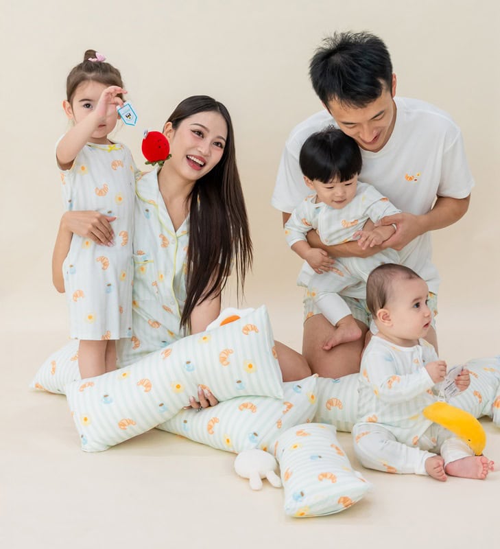 Coordinated Family Looks: Mix and match prints and sizes for a playful, cohesive family aesthetic during breakfasts, holiday photos, or cozy movie nights.