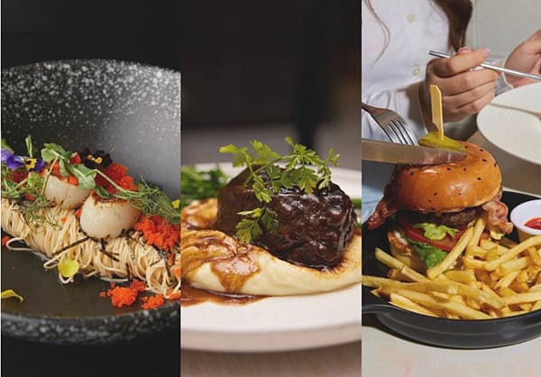 L-R: Cold Truffle Pasta, Braised Beef Cheeks, The Fab Burger
