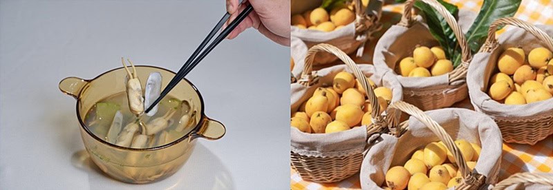 L-R: Seasonal Duotou Clam, Seasonal Loquat